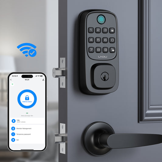 LNDU WL01 Keyless Entry Door Lock, WiFi Smart Keypad Deadbolt with Handle Set, Supports Fingerprint, Amazon Alexa, Google Assistant, App Control, Auto-Lock, One-Time Code, Anti-Peeking Password