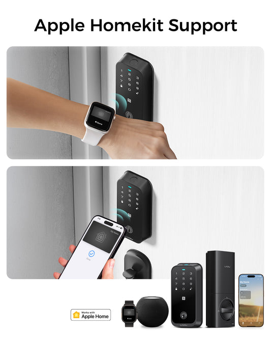 LNDU HK01 Keyless Entry Fingerprint Door Lock with Apple Home, Tap to Unlock,Smart Electronic Code Door Lock for Front Door or Back, Keypad Door Lock with Handle